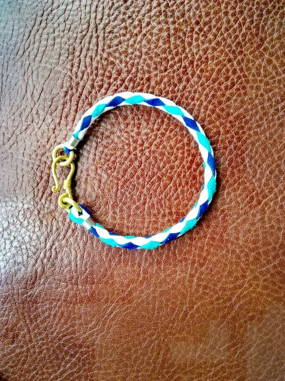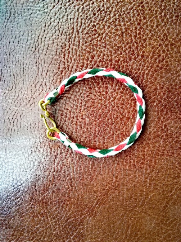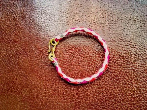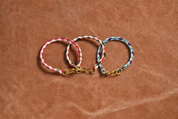 ・起毛した優しい肌触りのピッグスエードで編み込んだブレスレット。発色の良い鮮やかな3色をチョイスしているので、ファッションのアクセントとして◎